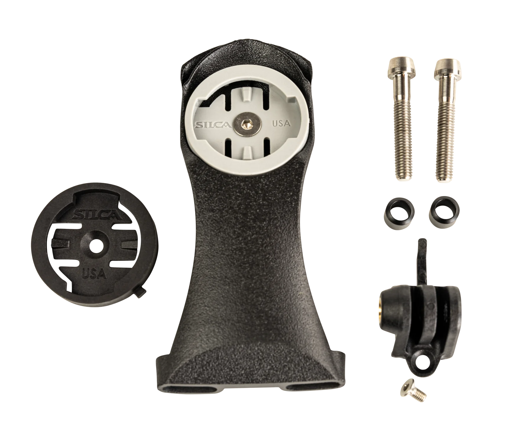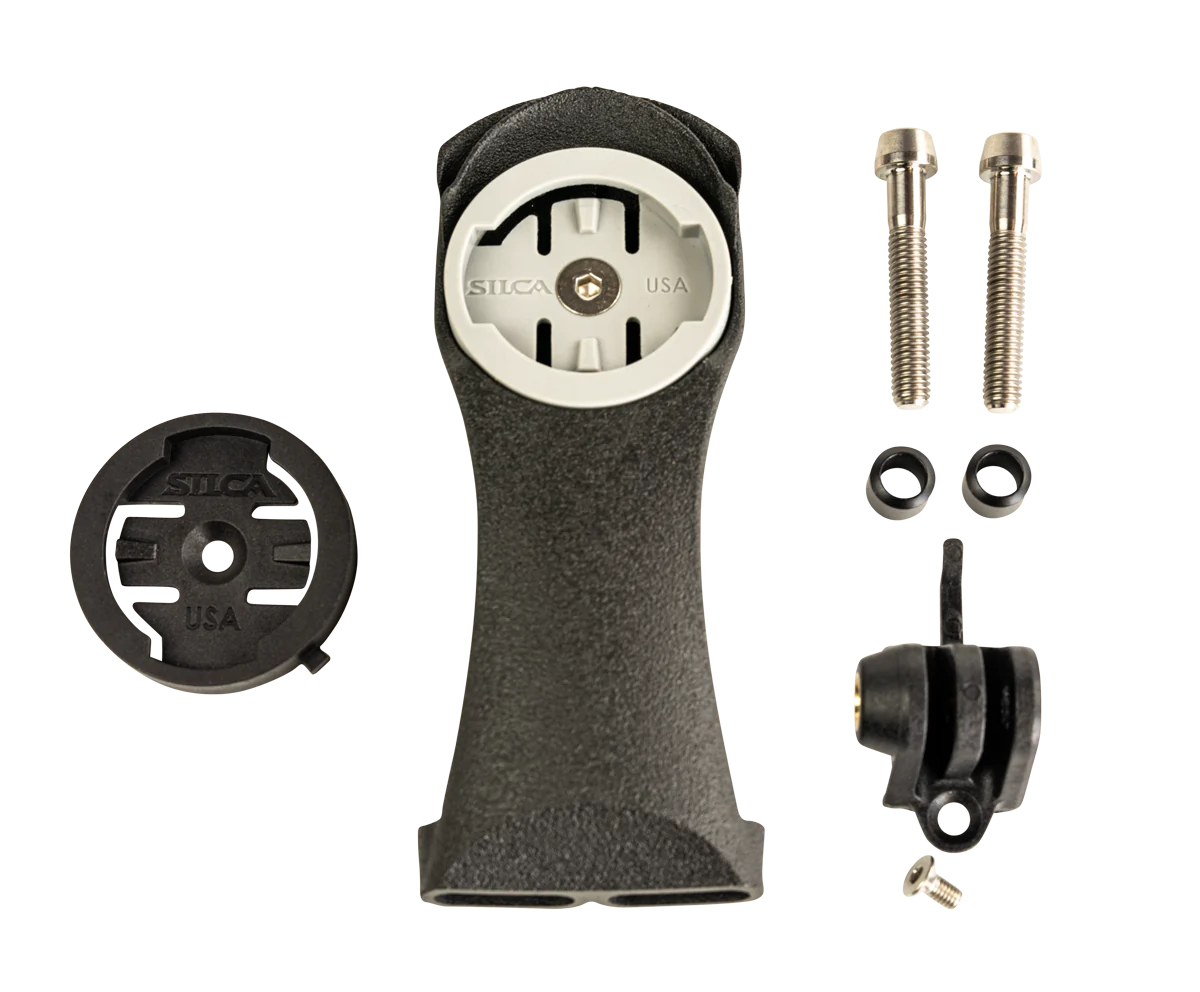 Cutting edge aerodynamic and lightweight mount 3D Printed in Titanium compatible with all Garmin and Wahoo computers (except bolt v1). T-Tray mounting system makes for a removable mount for lights, cameras, and more!
