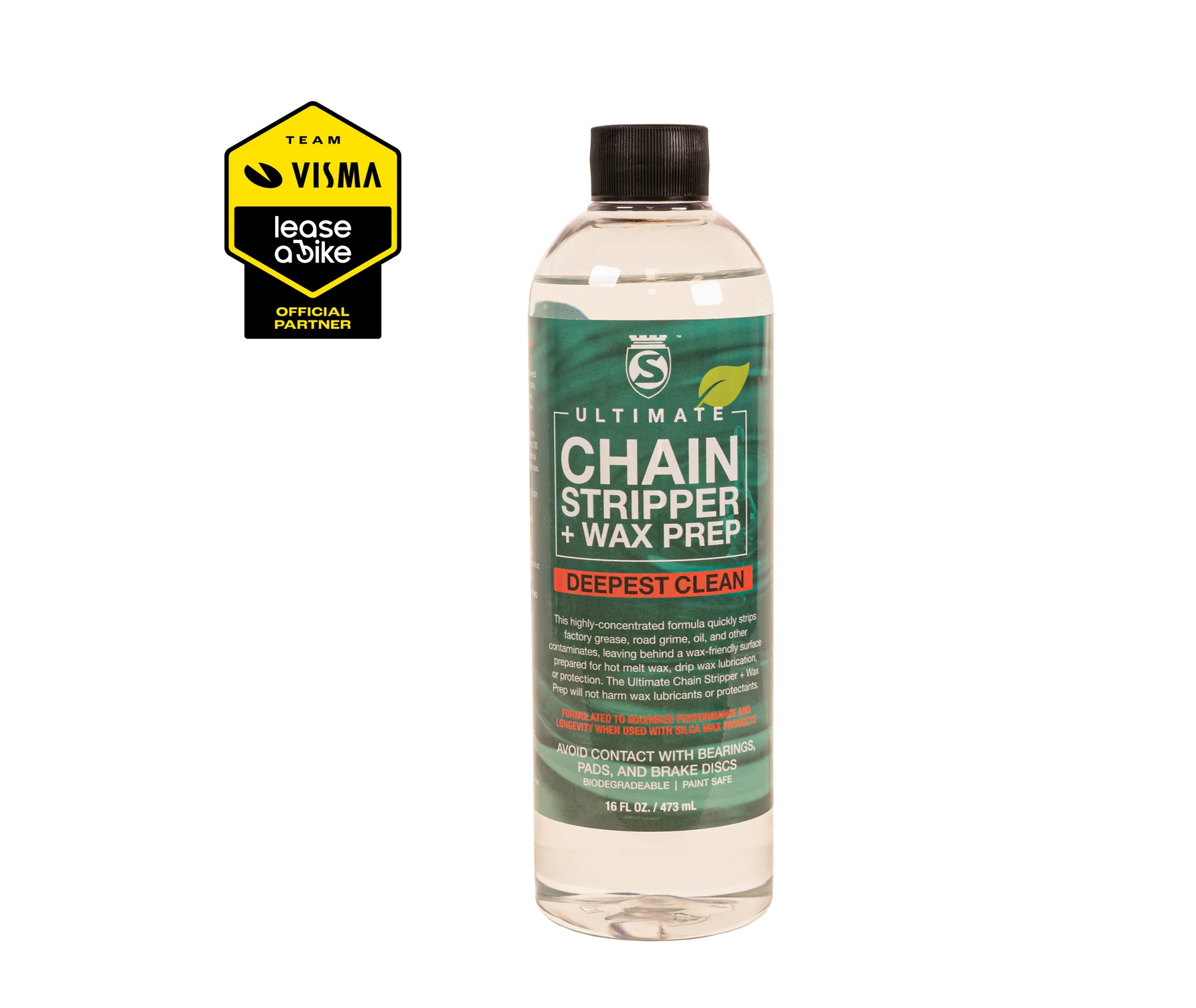What is it: SILCA Chain Stripper is a highly concentrated, biodegradable degreaser combined with a wax adhesion promoter (primer) which allows for fast, single step preparation of factory chains for waxing while also improving wax adhesion and increasing longevity. SILCA Chain Stripper reduces the time and number of chemicals required to properly prep a factory greased chain to less than 10 minutes and can even be used to prepare chains on bicycle for drip wax application.